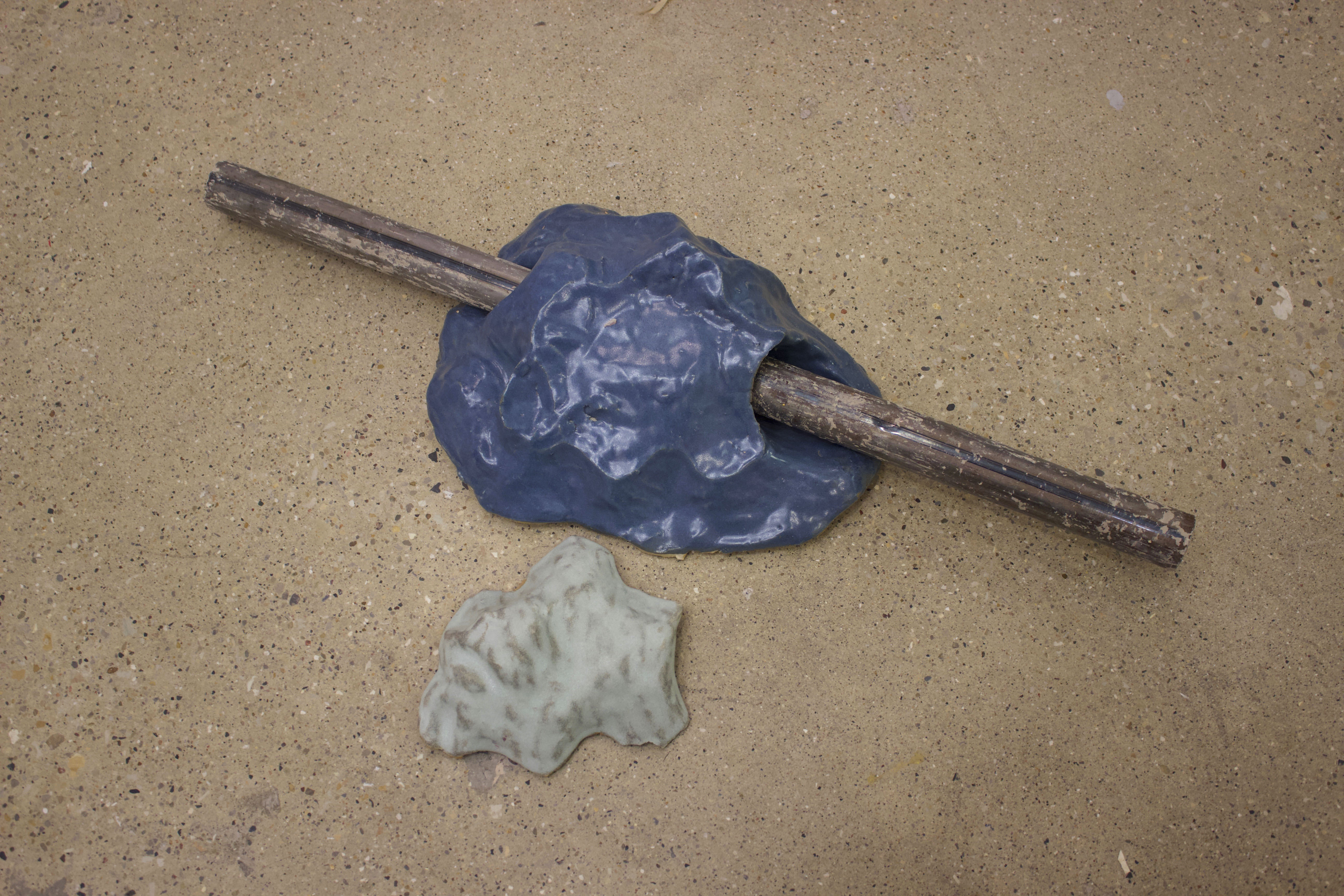 Ceramic objects with steel, held together with tension and balance